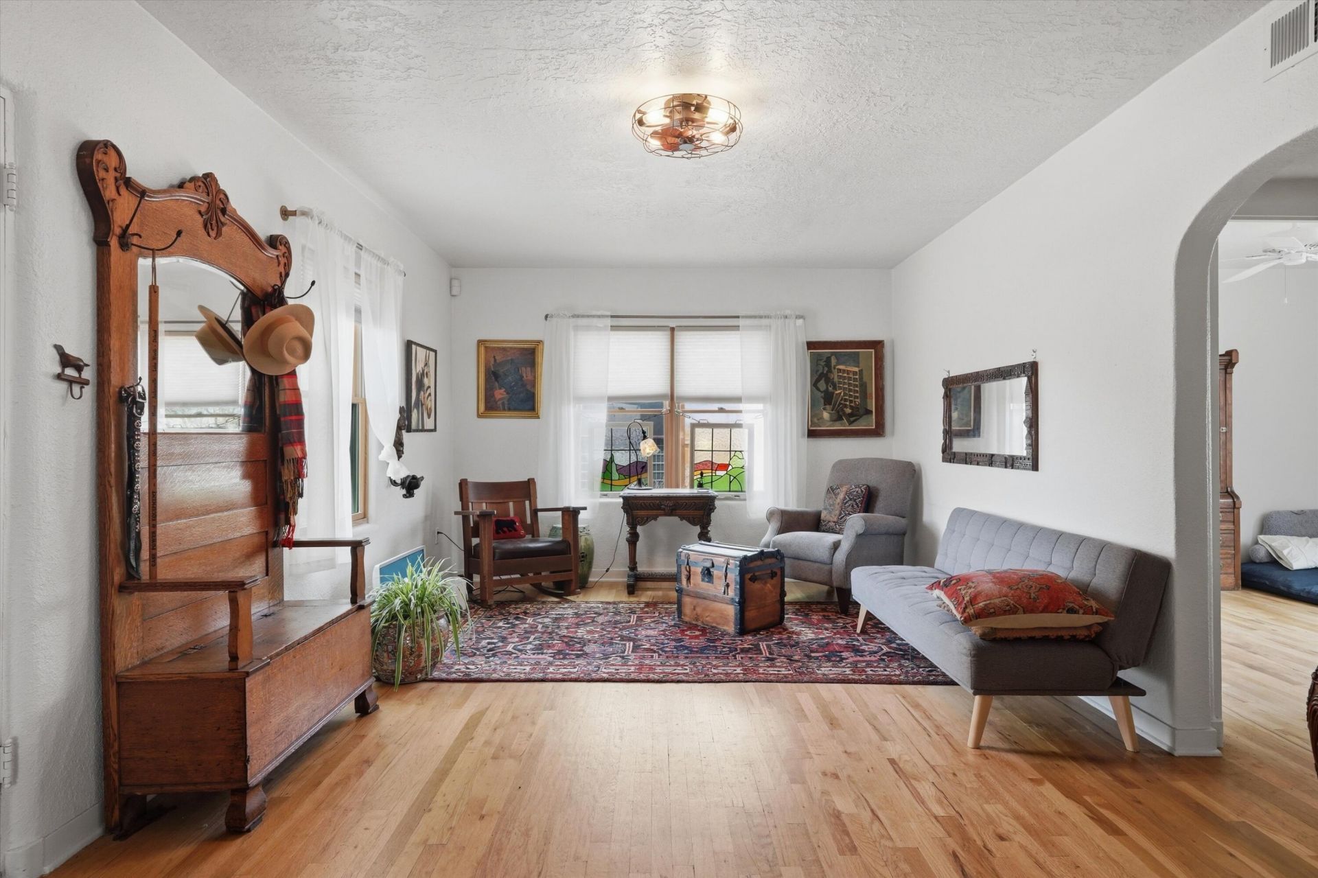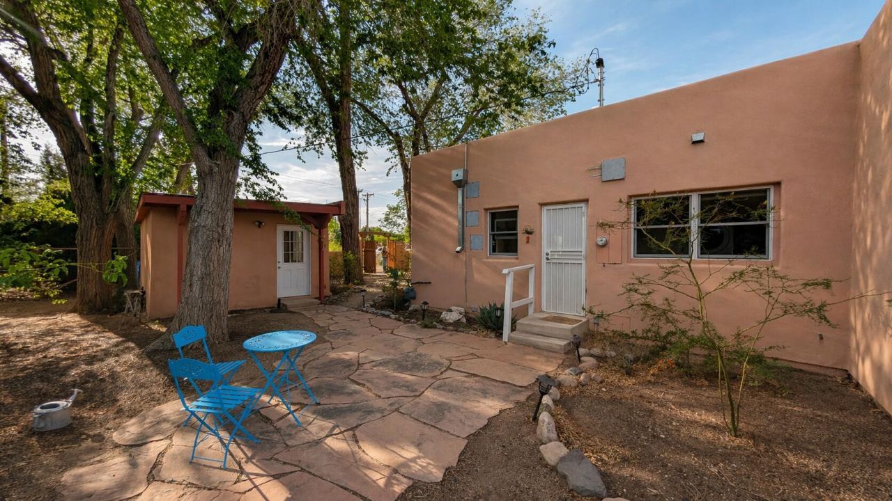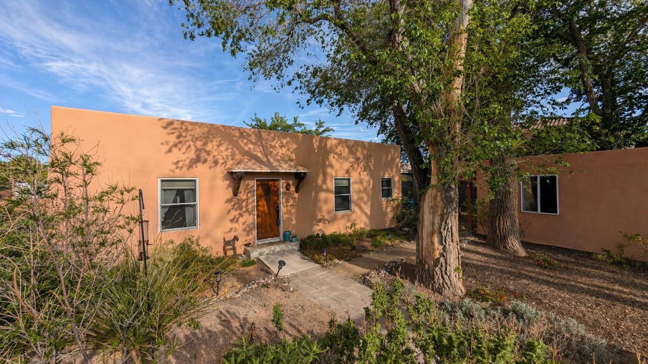 Located in a prime Rio Grande setting just minutes from Old Town Albuquerque, the BioPark, and the Nature Center, this beautifully updated home offers both convenience and privacy. A walled and gated courtyard welcomes you onto an expansive 8,712 sq ft lot, professionally landscaped with irrigated, and drought-tolerant plantings. Inside, enjoy light-filled open living spaces, oak hardwood floors, refrigerated air, and a thoughtfully updated kitchen and bathroom. The HOA also provides access to a charming casita for a nominal fee--ideal for hosting visiting family and friends. A rare combination of location, privacy, outdoor space, and modern updates.